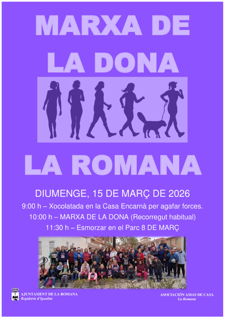 La Concejalía de Igualdad del Ayuntamiento de La Romana en colaboración con la Asociación de Amas de Casa, organizan la Marcha de la Mujer 2026.