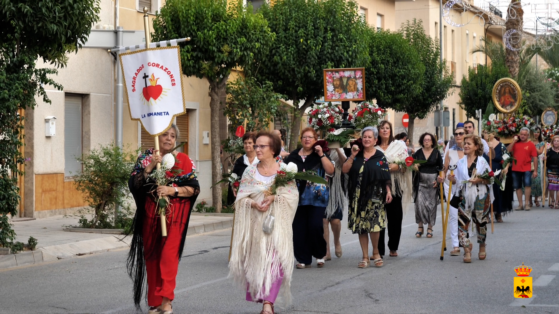 Acompañados de la Banda de Música de La Romana, las agrupaciones de Coros y Danzas de Algueña y Hondón de las Nieves y la colla de dolçainers y tabaleters “els Ous i el Sarnatxo”, recorren las principales calles del municipio hasta la Iglesia Parroquial para depositar sus ramos de flores.
