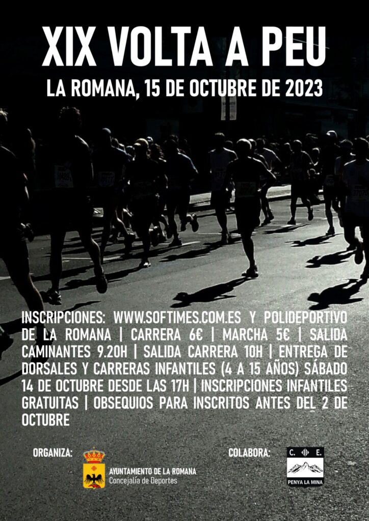 La Regidoria d’Esports i el Club Esportiu Penya la Mina organitzen per a este cap de setmana del 14 i 15 d’octubre la XIX Volta a Peu. El diumenge es realitzarà el cross “Volta a Peu” es tracta d’un cross mixt de 10km, que es realitza mitjançant 2 modalitats CAMINANTS i CORREDORS. L’eixida per a la marxa caminant tindrà lloc a les 9.20 sent la prova no competitiva i posteriorment a les 10.00 serà l’eixida per als corredors.