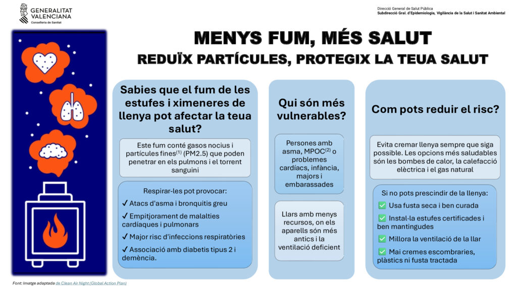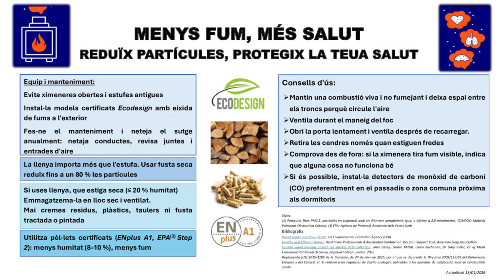 Des del Centre de Salut Pública d’Elda remeten informació referent a les estufes i ximeneres de llenya i la qualitat dels ambients interiors.